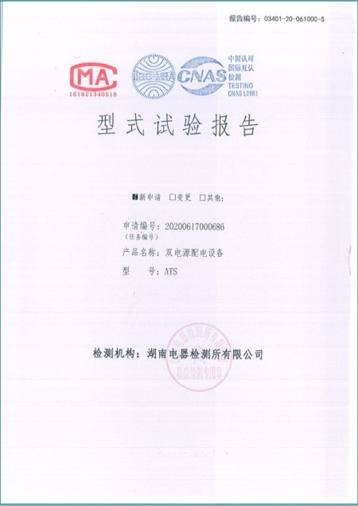 ATS1600A雙電源配電設(shè)備型式試驗(yàn)報(bào)告